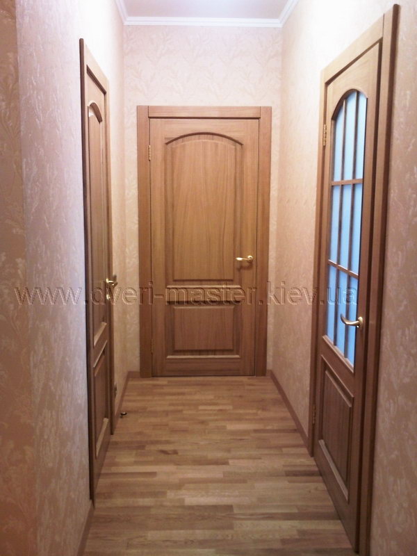 При желании любой шпон перед лакеровкой можно затонировать в любой оттенок, сохраняя при этом текстуру дерева. Лаковое покрытие, кроме декоративной функции, имеет большой практический смысл. С одной стороны, оно препятствует проникновению влаги в дверное полотно и, как следствие, его разбуханию, а с другой, предотвращает пересыхание дерева при низкой влажности в помещении.